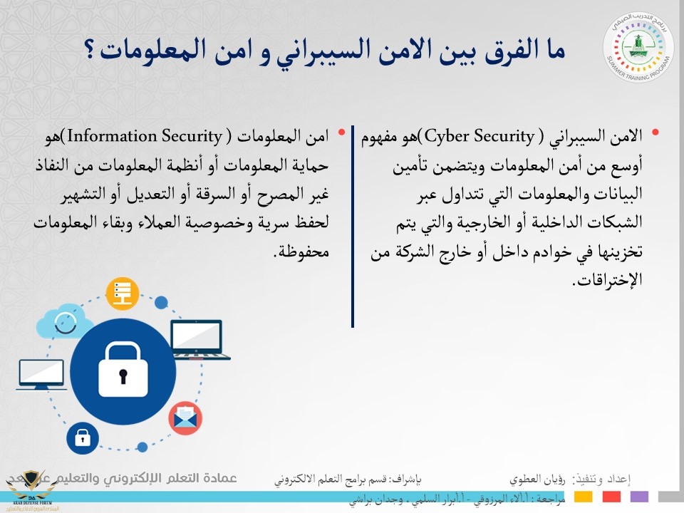 .الأمن السيبراني وتطوير البرمجيات والدرونز والتقنيات المتقدمة، بناًء على أفضل الممارسات العالمية رؤيتنا: See more of الاتحاد السعودي للأمن السيبراني والبرمجة والدرونز on facebook. العاهل السعودي الملك سلمان بن عبد العزيز يُعفي ولي العهد محمد بن نايف من منصبه ويعين نجله محمد بن سلمان مكانه، وليا للعهدن ونائبا لرئيس الوزراء. ويعتبر الأمن السيبراني مفهوم أوسع من أمن المعلومات حيث يتضمن تأمين البيانات والمعلومات التي تتداول عبر الشبكات الداخلية أو الخارجية والتي يتم تخزينها في خوادم داخل. نعمل على تمكين السواعد الوطنية وتعزيز قدراتها في مجالات الأمن السيبراني وتطوير.